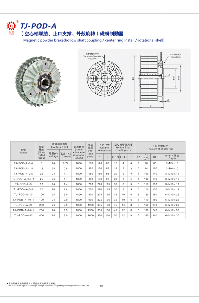 概述POD-A孔式外旋磁粉制動(dòng)器的線圈靜止型產(chǎn)品又有外殼靜止和外殼旋轉(zhuǎn)二種類(lèi)型。對(duì)于外殼靜止的產(chǎn)品,靜止線圈位于轉(zhuǎn)子的外部,對(duì)于外殼旋轉(zhuǎn)的產(chǎn)品,靜止線圈位于轉(zhuǎn)子的內(nèi)部。根據(jù)輸出轉(zhuǎn)子工作面的形狀不同,常用的產(chǎn)品有圓柱形轉(zhuǎn)子、杯形轉(zhuǎn)子和盤(pán)形轉(zhuǎn)子之分。